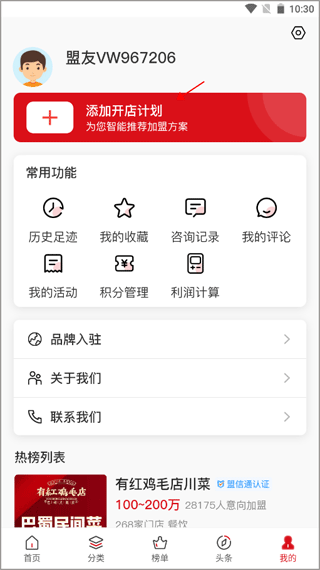 1、选择app中“我的”模块中的“+添加开店计划”并点击进去。