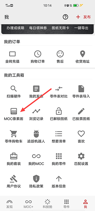 1、在积木高手“我的”界面点击进入“MOC像素画”;