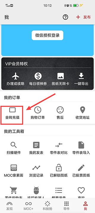 2、然后在积木界面点击进入“零件”一栏,接着点击“VIP一键导出”即可。