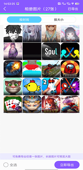 5、等待扫描完成后,选择你需要恢复的图片,然后点击导出即可。