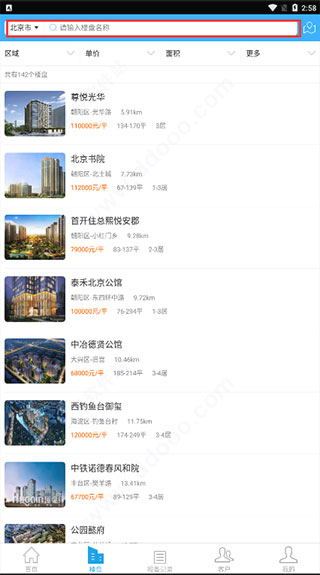 2、在楼盘板块,能够看到一系列的再现房源,也可以搜索你中意的房源信息: