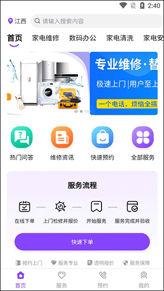 1、进入安装师傅app,点击主页的快速预约;