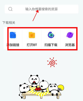1、下载本站提供的熊猫下载软件免费版,进入主界面我们可以搜索需要的资源,也可以复制磁力链接;