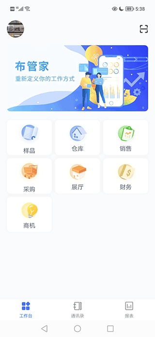 布管家app是针对纺织品产业设计和开发的一款erp管理软件,该软件功能全面,商家可以通过这个软件对商品进行管理、采购和统计。软件首页在您加入或创建后会出现需要管理的事项,在样品中,商家可以查看商品的样品信息,在仓库中商家可以查看库存,在销售栏中商家可以查询到销售订单、销货单和退货单,在采购中可以看到采购单、进货单和退回单,展厅中由热门产品和全部产品2个功能组成,在这里还可以对商品进行分类,软件还有其它强大功能等待着您的加入,感兴趣的各位完全可以下载来看看吧。