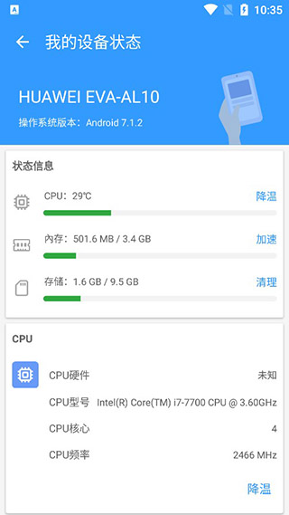 2、当你手机发烫时可以选择CPU降温的功能,不一会儿温度就会变低;