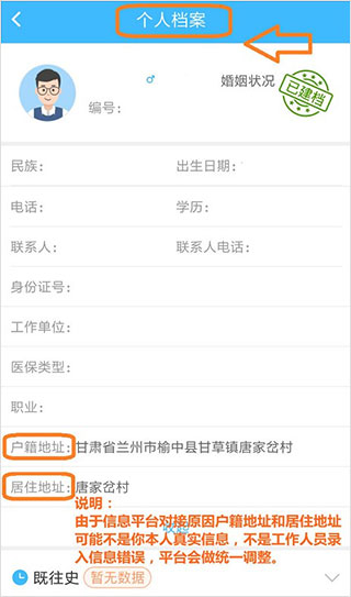 4、【档案查询】 个人健康档案,随时掌握自己的健康状态。