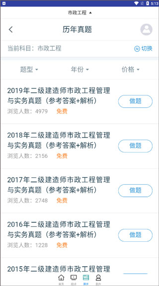 5、在题库里有着大量历年的模拟试卷,用户可以试试能做对多少,在答完题之后还可以参考下答案,看哪里写错了: