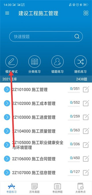 1、打开在本站下载的华云题库2022二级建造师破解版,如果你想要模拟考试的话,直接单击下方位置