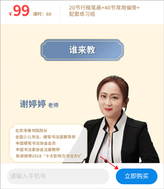 2、进入界面后,在下方输入手机号,立即购买后即可进行学习啦。