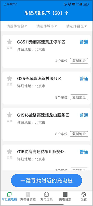 附近充电桩:根据实时定位一键为用户推荐最近充电桩位置。充电收藏:收藏常用充电桩,快速查询。