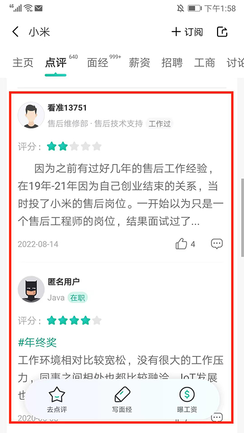 4、进入到点评界面,往下滑动,即可看到公司评价内容。