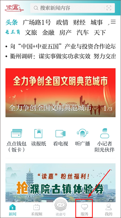 (1)打开登录读嘉APP,点击首页的【读报纸】