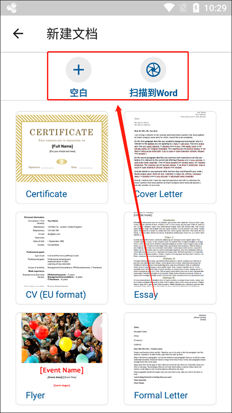 2、新建文档可以选择“空白”或者是直接“扫描到woed”,我们选择新建空白文档。