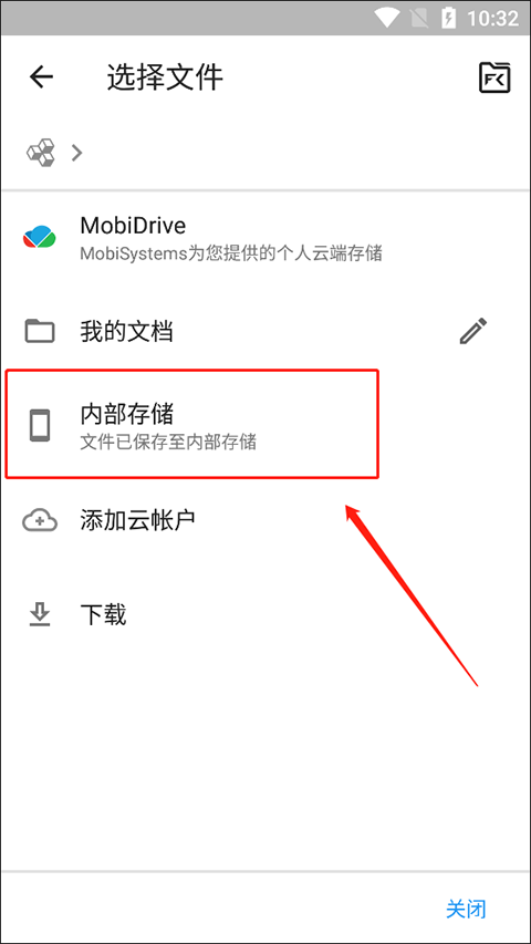 3、这里有一个选择文件,用户可以选择“内部存储”选项。