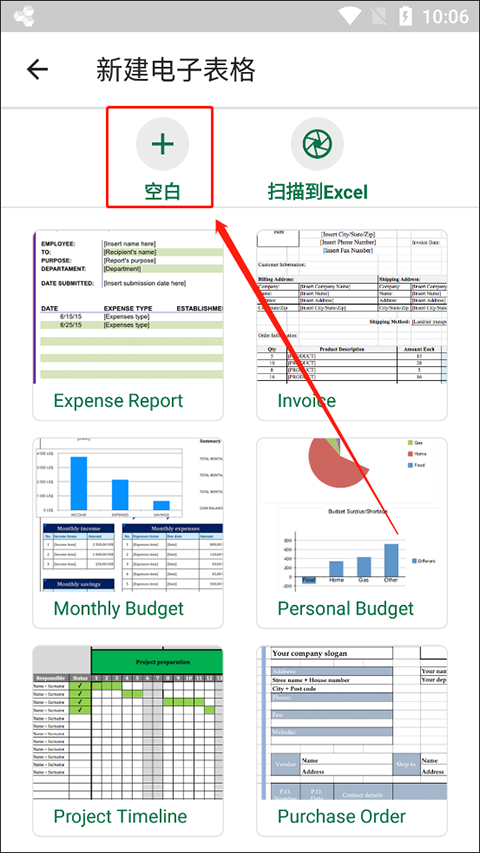 2、打开"新建电子表格"操作界面,点击"+"符号按钮。