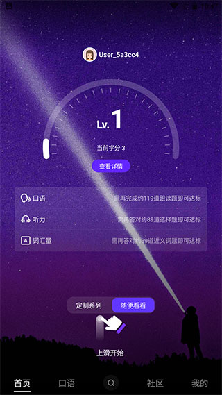 3、评定完毕后,你将进入学习阶段,每个等级想要提升,软件都会给出一系列的考核标准;