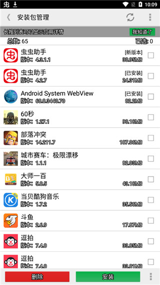 4、可批量删除、安装APK安装包;