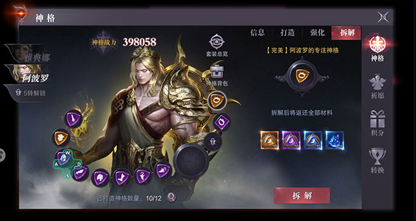 已打造神格,可以通过拆解百分百获得之前消耗的材料,方便玩家更换其他神格。