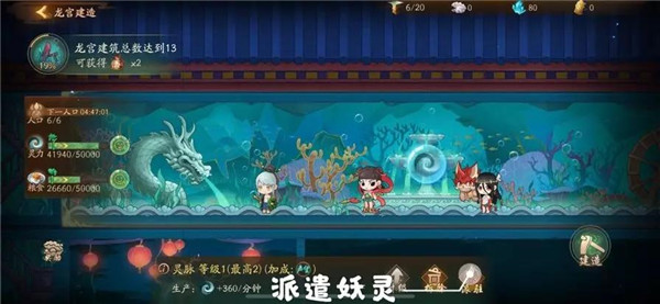 1、用途:生产灵力,灵力用于龙宫运作(区别于妖灵精力)。例如1级花鱼田建筑消耗灵力60/分钟,灵力3600以上才能正常运作。