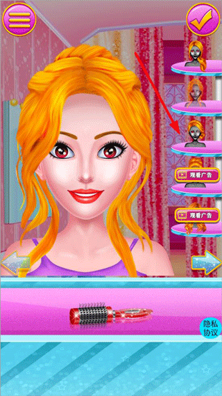 5、美容完成后,给公主化个美美的妆容吧,右侧可以选择发型和妆容;