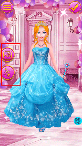 7、装扮好之后,打开摄影,给公主拍下美美的照片,左侧可以选择拍照背景以及照片特效。