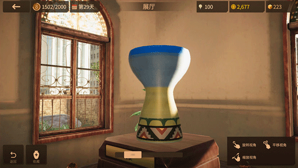 等这一步完成后,那么就可以将其拿到博物馆来进行展览了,观看的游客越多,你们获得的金币也就越多,这些金币可以用来购买更高级的原材料和各种花纹以及装饰。