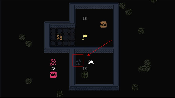2、这个时候我们控制的就不是baba了,可以控制墙壁,向下滑动用墙壁触碰旗子