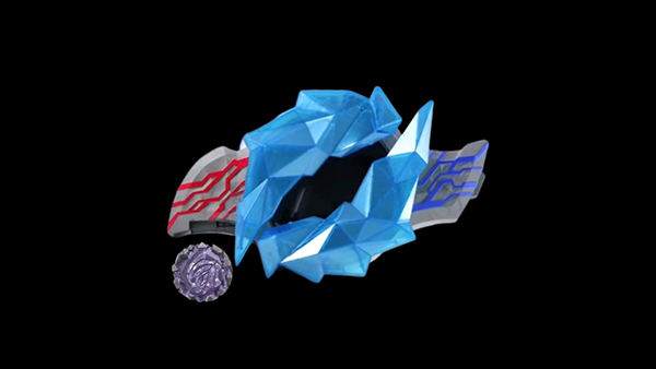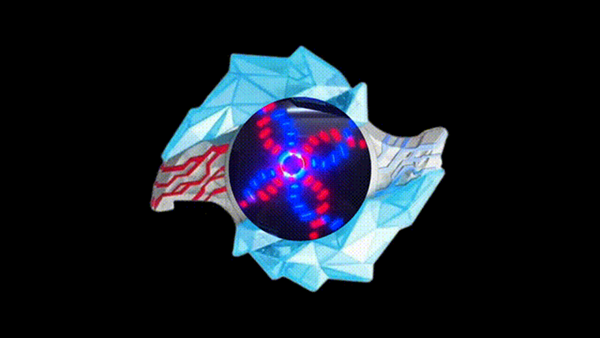 5、变身过程中,中间的水晶会展开露出显示屏,出现红色和蓝色圆圈旋转,不同的晶石特效都不一样的。