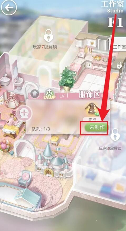3、就以服装区举例,点击服装区后,在弹出的页面下点击“去制作”。