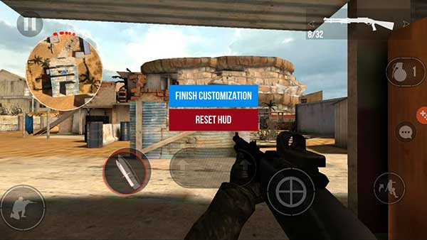 6.按键位置可以设置的,可以放大和缩小,按键位置的安排挺重要的,我个人喜欢把发弹按钮放左边,瞄准放右边,大家都知道左边是移动,右边是调整准星位置,这样的好处是开瞄准镜时可以调整准星位置,并且最快速度的发子弹,缺点就是牺牲走位,近距离对射时走位还挺重要的。调整完按蓝色那个就行