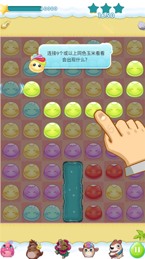 4、连接9个或以上同色玉米看看会出现什么?