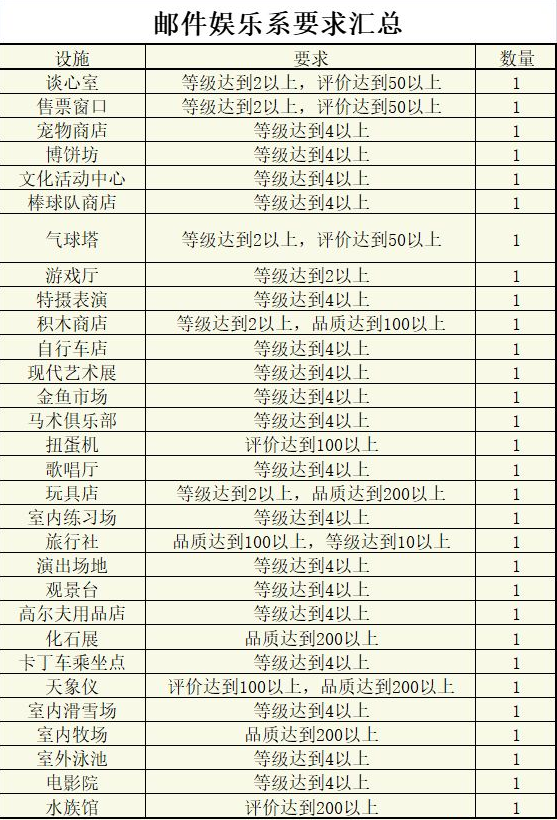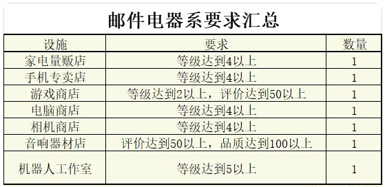 满意顾客基本上是设施到4级左右,如果点数不充沛,可以打开邮件界面拉到最下方看看满意要求,针对性的进行完成,如果点数充沛,就把现有设施挨个升4级等着就行。