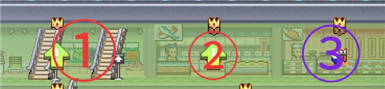 游戏开始时,在一楼左侧挨着自动售货机左侧依次建造扭蛋机和零食店,顺序不要乱,从左到右依次为零食店 扭蛋机 自动售货机,构成专柜楼层,提高评价和价格。提到顺序问题是因为之后还可以往左侧搭其他的专柜楼层。(专柜楼层是指特定的某三个店铺或者设施连续摆放可以触发,详细的专柜楼层分类文末的链接有)。
