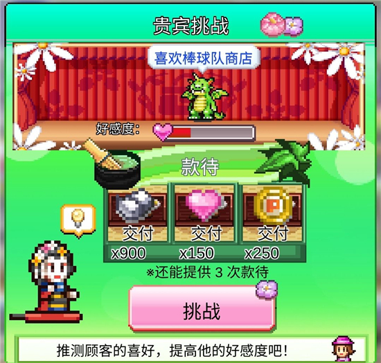 如果招待失败后可以使用金钱或者爱心或者点数进行补救,通常情况下钱是最好使的,但是也有例外,即使补救失败也没关系,过一阵它还会来的。