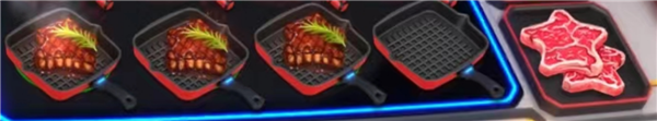 在游戏中只需要我们点击食材,放在煎锅中,将菜品烤熟即可放置到配菜的桌面上。别忘了升级你的餐具,加快制作速度