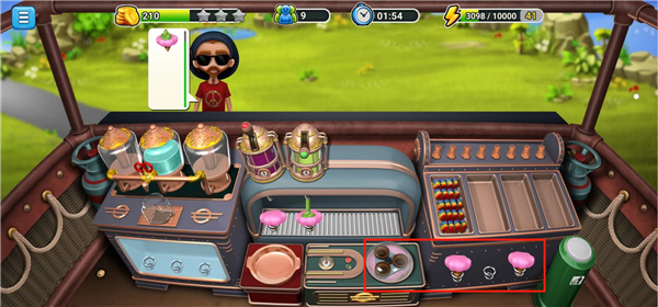 首先准备好甜筒,每次点击都会获得三个甜筒,在我们缺少哪怕只有一个的时候就开始制作,边做边用,保证甜筒不会缺货。