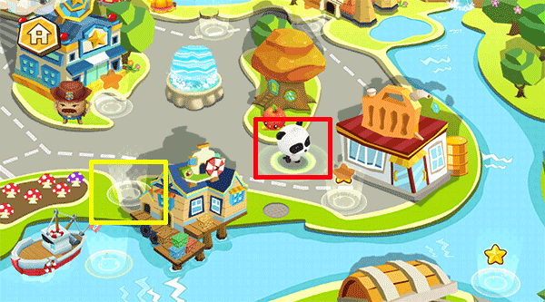 1、打开游戏,在大地图上点击小熊猫的任意一个放向,小熊猫就会去那个方向,比如如图,点击一个位置后蓝色方框内的位置会出现一个圆形的小圈;