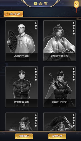 皮肤兑换需要皮肤碎片进行兑换,而且每天兑换处会随机刷新四个门客的皮肤,各位老爷攒够了皮肤碎片之后可以等刷新到自己心仪的门客皮肤后,再进行兑换哦!