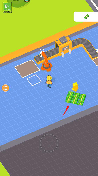 1、下载安装异星工厂游戏,进入游戏后滑动屏幕控制角色领取钞票;