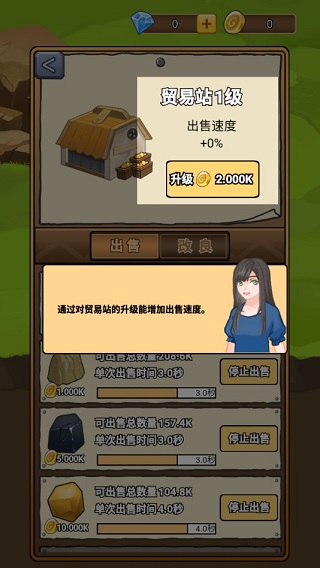 7、有了可供出售的加工物可以在贸易站里出售以赚取现金,通过对贸易战的升级能增加出售速度。