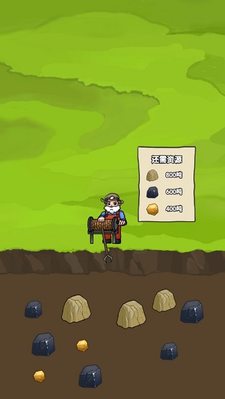 2、掌握了操作方法后,继续去挖金矿400吨,铁矿600吨,砂石矿800吨吧!