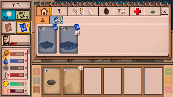 狩猎野猪有可能造成开放性伤口,需要使用细线+针合成的缝线止血。最好再用小布+草木灰(碾碎木炭或熄灭火堆得)合成的灰绷带包扎,别忘了抹上芦荟膏加快愈合。细菌值可以通过冲洗伤口减少。