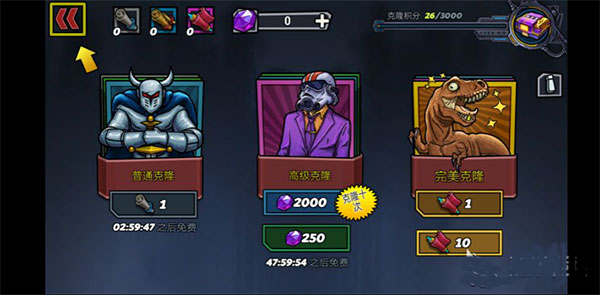 2、开局会赠送我们一次普通克隆和高级克隆,普通克隆虽然可能没法获得很高品质的卡牌,但是像拳击手这类虽然是普通卡牌。血量也是很可观的,况且我们可以后期进行再合成,合成才是游戏特色,所以多积攒卡牌一定是有用处的。