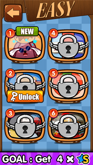 3、虽然每一关的内容不同,但是主要功能都是一样的,关卡之间的共同功能也只有两个,那就是暂停和重玩这一关,而在暂停按钮里有回到关卡和开关闭声音的选项;