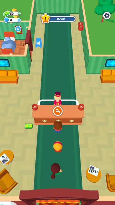 游戏中玩家从一个简单的门卫开始游戏,独自打扫房间,在接待处迎接客人,收取付款和小费,并保持浴室备有卫生纸。随着银行余额的增加,升级客房和设施,并雇用新员工,以帮助满足酒店不断增长的需求。作为一款可以让玩家全神贯注的游戏,手游原创且简单易玩并提供无尽娱乐时间管理,直接进入快节奏的酒店服务世界,发展作为经理、投资者和设计师的技能,感兴趣的玩家快来下载试试吧!