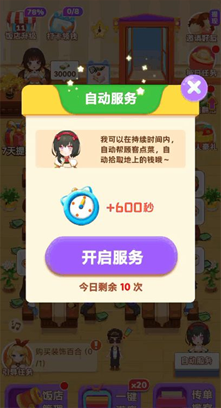 1、每日上线都将会拥有着不同的经营任务,去快速的赚取到更多的收益;2、各种不同的服务,为玩家们提供,更好的环境,等你来自由设置;