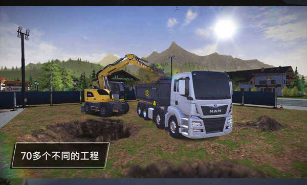3、玩家们可以驾驶14个品牌、超过50种建筑机械,比如德国曼集团MAN、卡特彼勒CAT等知名工程机械公司旗下的各种车辆,还可以完成70多个订单任务。