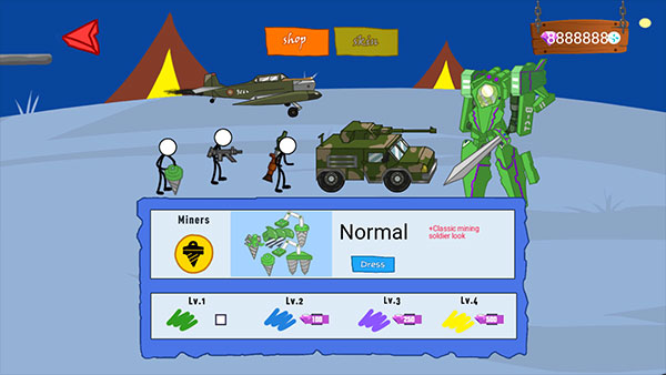火柴人现代全面战争顾名思义是一款以火柴人为主角的战争手游,游戏有着精彩刺激的战争画面,清新简洁的UI页面设计,全新的兵种体系,简单又好玩的游戏玩法,且设有大量的现代武器,坦克、步枪、火箭炮等等,都收录在其中,并精心制作各种不同的关卡任玩家尝试挑战,让你能尽享游戏的独特乐趣。当然,游戏的整体玩法也是十分轻松简单,没有过多复杂的操作,也没有太多的任务系统,可以简单、轻松上手。此外,在这里为大家带来的是火柴人现代全面战争破解版,该版本已被专业的网络大神成功的破解,修改了内部的数据,玩家一进入游戏就能免费获得大量钻石,让你能获得更佳的游戏体验,喜欢的朋友赶快来下试试吧。