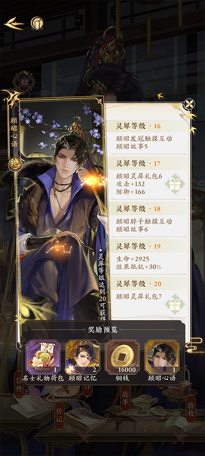灵犀值升级也是有奖励的,灵犀值最高可以提升到20级,每达到一定等级,我们将获得角色碎片、礼物和金币作为奖励。