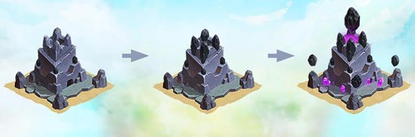 夜幕降临后,地表上浮起的矿石会放出隐约的紫光,强大的磁力吸附着周围的金属。通过吸取其中的钢元素可以帮助钢属性龙提升力量。